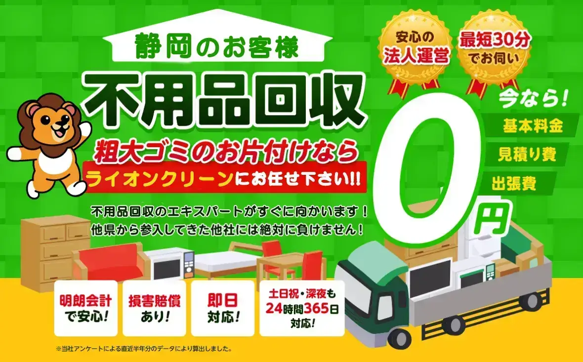 不用品回収ライオンクリーン静岡(以下,「当社」といいます。)は,本ウェブサイト上で提供するサービス(以下,「本サービス」といいます。)における,ユーザーの個人情報の取扱いについて,以下のとおりプライバシーポリシー(以下,「本ポリシー」といいます。)を定めます。